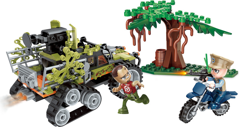 Sauvez le précieux petit singe d'un sale braconnier. Arrêtez-le et confisquez son véhicule tout-terrain camouflé équipé d'un lance-filets. Les ensembles de construction Qman très variés en blocs plastiques colorés peuvent être combinés avec des ensembles similaires de nombreux autres fabricants renommés.
