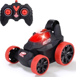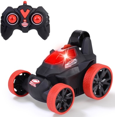 Voiture télécommandée, 2 canaux, fréquence 2,4 GHz, fonction de rotation et de retournement, essieu avant pivotant, lumière dans la fenêtre, vitesse jusqu'à 5 km/h, longueur 12,5 cm, batteries incluses.