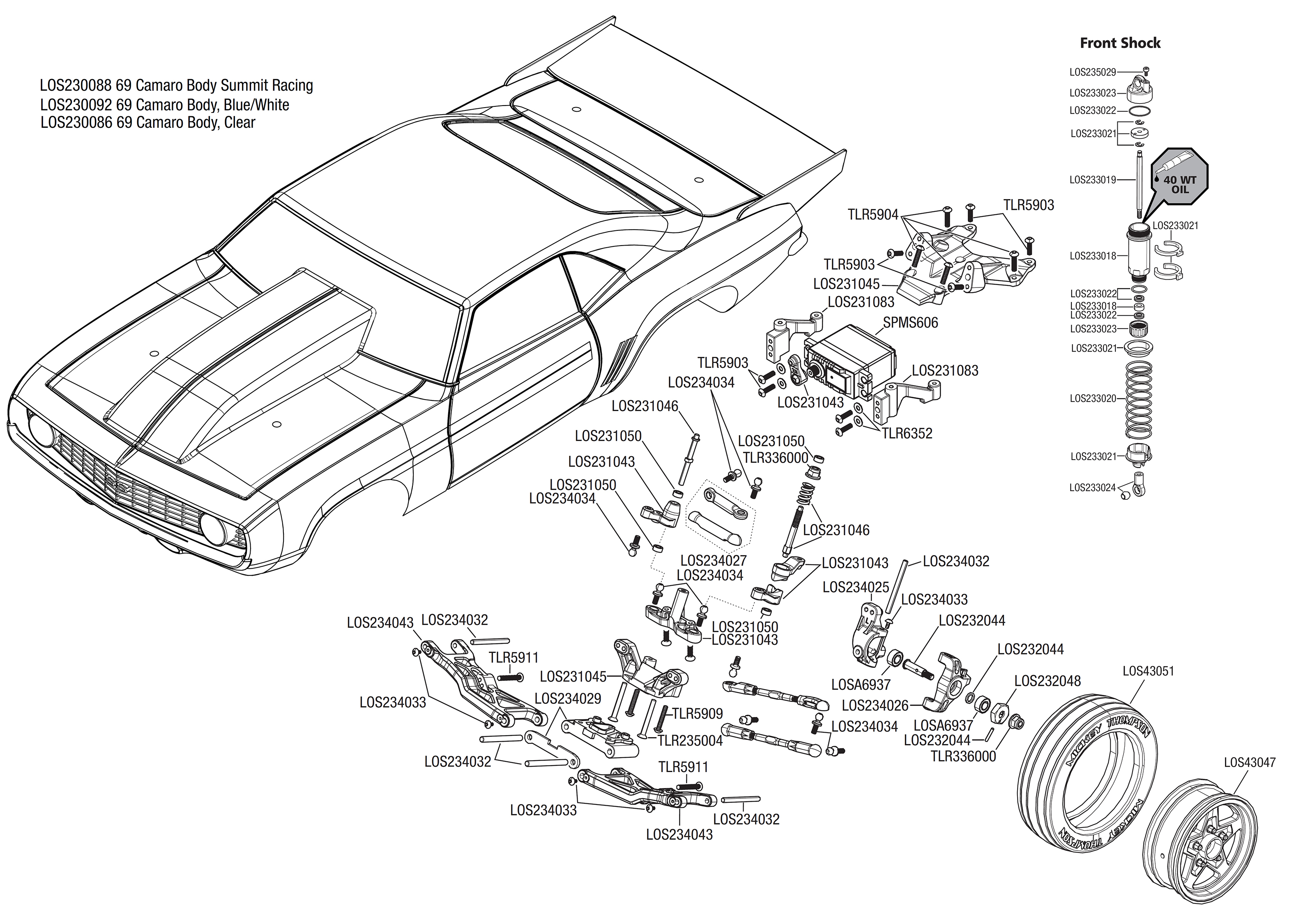 Pour le produit Losi 22S Dragster 1:10 1969 Camaro RTR bleu