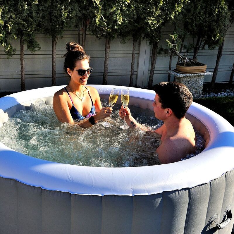 La baignoire à remous mobile BeneoSpa-NEW offre un excellent rapport qualité/prix. Son diamètre extérieur est de 180 cm et elle peut confortablement accueillir 4 adultes. Grâce à un système de gonflage externe, la baignoire est prête à l'emploi en quelques minutes, sans aucun effort.