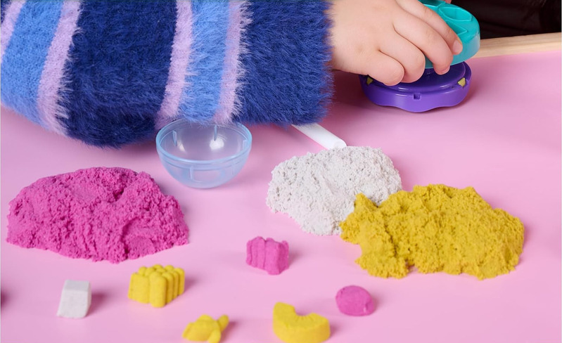 Ce kit créatif permet aux enfants de façonner, superposer, couper et mélanger du sable cinétique, stimulant ainsi leur imagination et développant leur motricité fine.