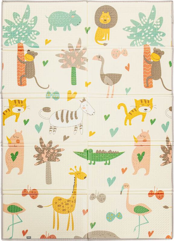 La mousse douce mais suffisamment ferme protège l'enfant du sol dur et amortit les chocs en cas de chute. Le tapis crée un espace idéal pour ramper, jouer et se reposer.