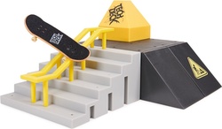 Le kit Jump N' Grind X-Connect Park Creator contient tout ce dont vous avez besoin pour construire votre propre skatepark génial, où vous pouvez montrer votre art. Construisez différentes combinaisons de deux rampes de grind, d'escaliers, de bords Hubba et de rampes sur lesquelles vous pouvez perfectionner vos tricks. Il y a un gap sur les escaliers, un slide sur le bord, du grinding, et tout ce que vous pouvez imaginer. Profitez des fingerboards exclusifs Toy Machine Skateboards signés par Daniel Lutheran, qui élargiront parfaitement votre collection.