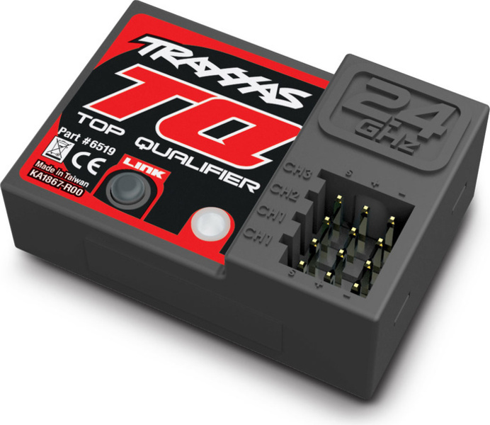 Le récepteur Traxxas TQ 2.4 GHz à trois canaux assure un contrôle sécurisé sans coupures. Appairage simple par un bouton. Indication de l'état par LED.