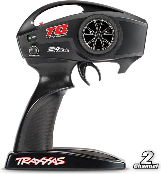 Le modèle est contrôlé par l'émetteur RC proportionnel à deux canaux Traxxas TQ, fonctionnant dans la bande 2.4 GHz - fonctionnement sans interférence. L'émetteur est alimenté par seulement 4 piles AA.