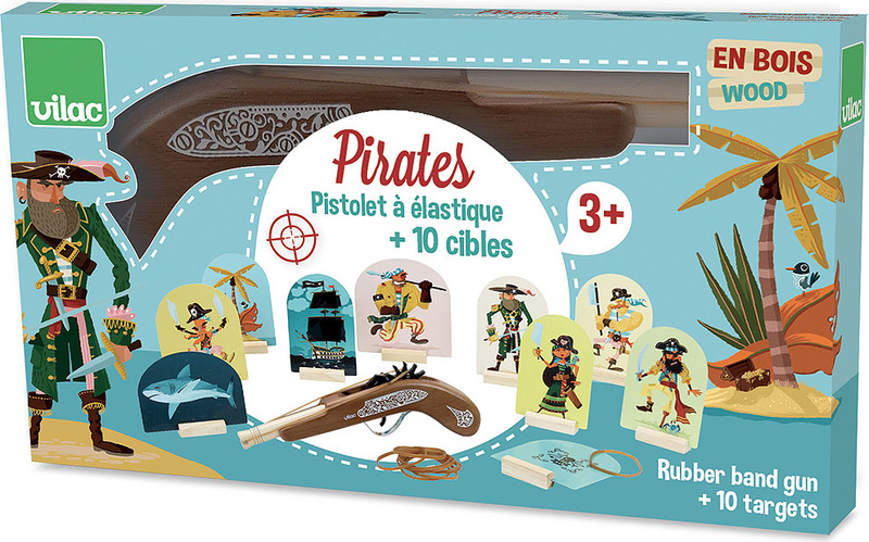 Vilac Pistolet pirate en bois avec élastiques et cibles