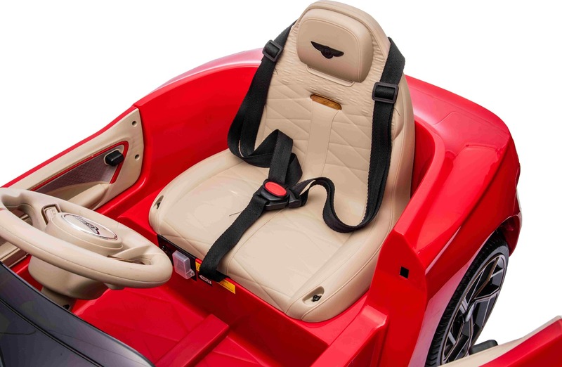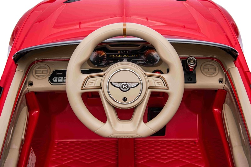Voiture électrique licenciée Bentley Bacalar NOUVEAUTÉ : Batterie lithium (12V/4Ah) Le dernier modèle de Bentley pour enfants allie un look luxueux et des technologies modernes en un seul. Un design soigneusement élaboré est complété par les dernières fonctionnalités telles qu'un lecteur MP3 avec entrée USB/AUX, tandis que le volume de tous les effets sonores est facilement contrôlé directement sur le lecteur. La lecture de musique, l'éclairage LED avant et un indicateur de l'état de la batterie, qui informe de la capacité restante en volts, sont également inclus.Volant multifonction - Avec des boutons pour contrôler le klaxon et changer de musique. Tableau de bord éclairé - Avec imitation de compteur de vitesse Portes s'ouvrant vers le haut - Avec verrou de sécurité La voiture est équipée d'une télécommande de nouvelle génération 2,4 GHz avec un interrupteur de démarrage éclairé à bouton unique. La sécurité est assurée par un frein d'urgence sur la télécommande, qui désactive immédiatement toutes les fonctions si nécessaire, permettant ainsi aux parents de garder un contrôle total sur la conduite. Il y a aussi une ceinture de sécurité qui offre une assurance lors de la conduite. Ceinture de sécurité à trois points - Pour une sécurité accrue de l'enfant.