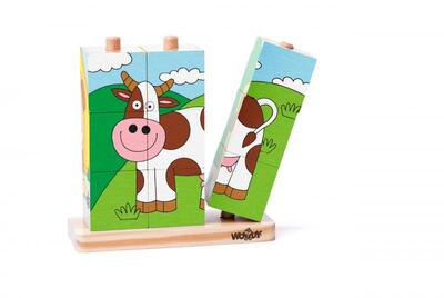 Le cube classique pour enfants composé de cubes avec des images a en plus la fonction où l'enfant enfile les cubes sur des tiges. Les images et le design de ce produit proviennent de l'atelier d'un designer tchèque. Les tiges ont une fonction de sécurité et en cas de chute de l'enfant sur une tige, elles se plient.